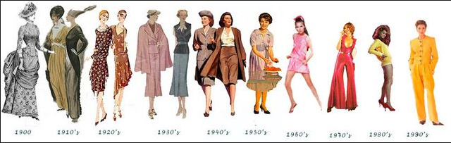 The 1920s are the era of women claiming their freedom, where "boyish" outfits reigned supreme. This decade was dedicated to defying gender barriers. The waistline was at the hip and the hem at the knee. Chanel was a major-influence designer, who brought forth styles that focused on simplicity and comfort, as well as class.