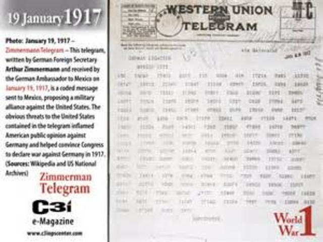 the Zimmerman Telegram was coded massage that was sent fromer Germany to Mexico on January 1917