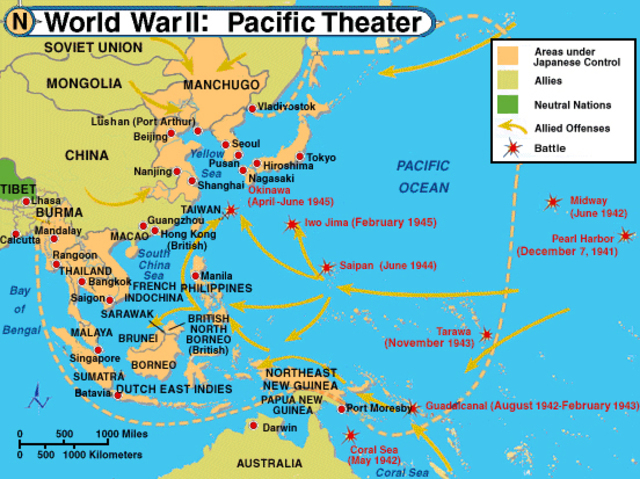 Japanese troops landed on the Guadalcanal in June of 1942 and started building an air base there, the US Marines showed up 2 months later to take it from them. The battle lasted six months with the US claiming victory on Feb 9th 1943. This battle cost the Japanese more than 2/3 of their troops, the US gave up less than 2000. This battle marks one of the major turning points of the Pacific War.