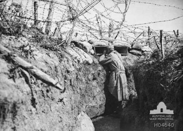 By November 22nd both sides have established trenches on their respective sides and trench warfare creates a real stalemate over the Wetern Front. This photo shows troops taking cover in a trench. For most of the war trench warfare dominates the Western Front.(Primary Source)