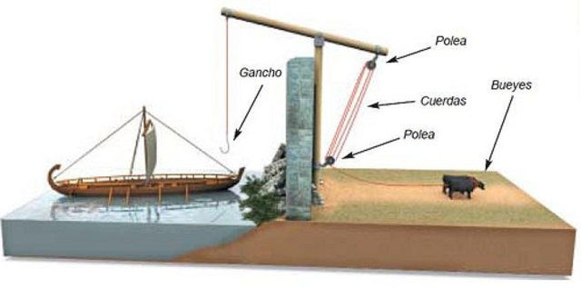 Arquímedes (287-212 AC), Fue el verdadero creador de la Mecánica teórica, Nació en Siracusa, Sicilia, y se educó en Alejandría, Egipto. En mecánica, Arquímedes asombró al rey Herón de Siracusa con los sistemas de palancas y de poleas que había ideado.