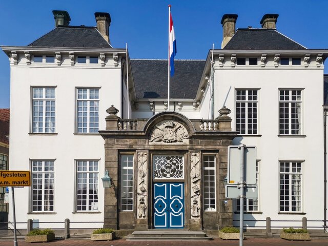 boven de deur prijkt het Wapen van de Graafschap. -